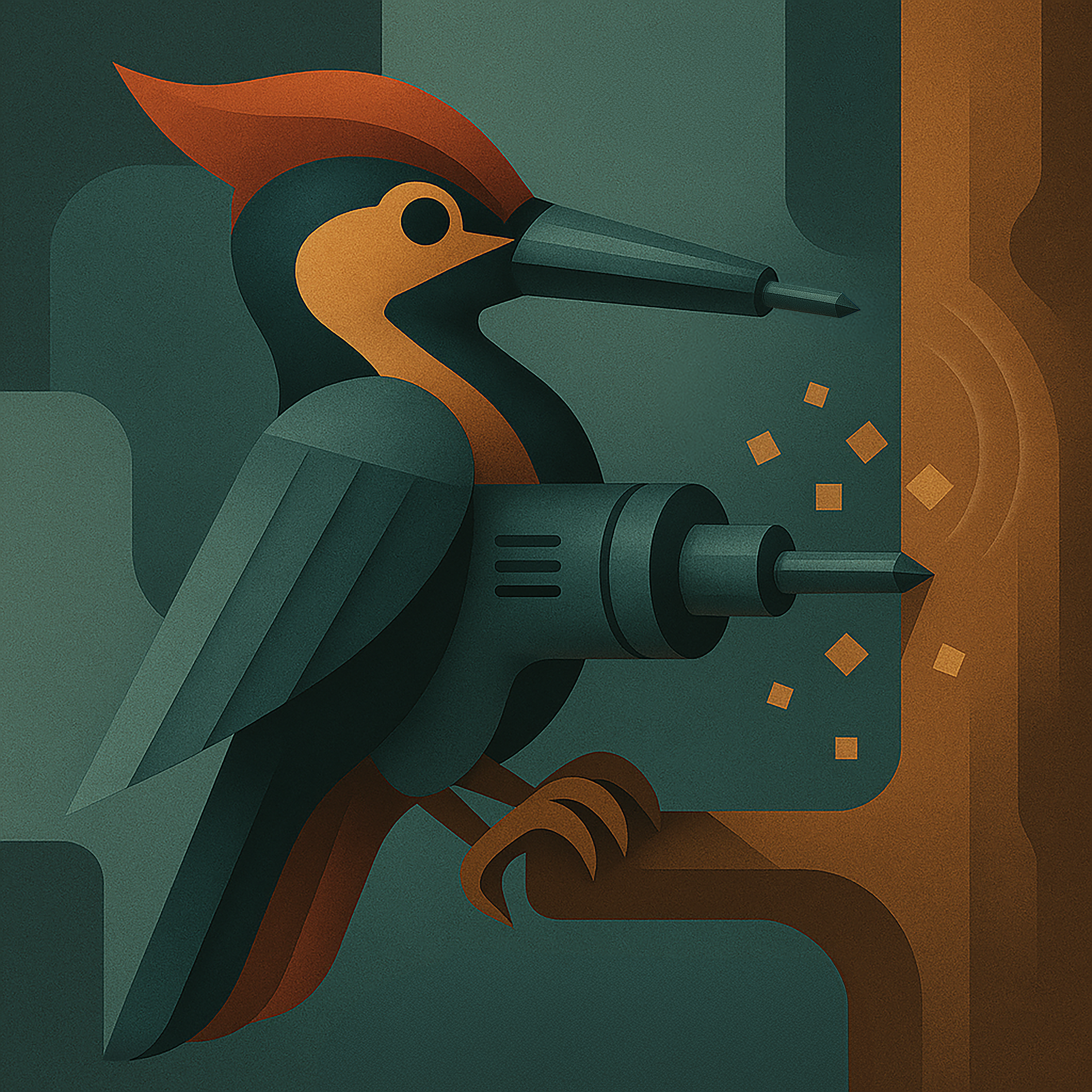 Relentless problem-solver who never meets a surface he can’t penetrate. With a beak that’s actually a precision percussion bit, a neck housing a compact high-torque motor, and a drilling rhythm that sounds like industrial drumming, he’s the specialist for holes that need drilling and fasteners that need driving—fast. His percussion action delivers thousands of impacts per minute, wood chips fly out as perfect squares (because even his debris is organized), and he can switch from drilling concrete to driving screws without breaking rhythm. He works vertically, horizontally, upside-down—gravity is a suggestion, not a limitation. He taps on things constantly (analyzing material density “just for fun”) and has personally installed 90% of the workshop shelving without anyone asking.